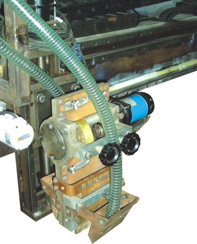 采用通电线圈产生控制磁场,利用通电线圈通过磁极产生磁力线来调整焊接溶池的流动,通过调节磁场的位置、磁控电流和焊接规范达到克服焊道咬边,调节焊接成型的目的。系统安装方便,调整范围宽,操作简洁、效果显著。