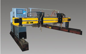 SQG系列数控切割机主要技术参数: 型 号: SQG-3000B SQG-4000B SQG-5000B 轨 距: 3000mm 4000mm 5000mm 纵向有效行程: 12500mm 有效切割行程: 120-2300mm 120-3300mm 120-4300mm 最高行走速度: 3500mm/min 纵向割炬: 8组 8组 13组 横向割炬: 2组 2组 2组 切 割 源: 氧气、乙炔或丙烷 1、数控系统为西班牙原装FAGOR8025,或国产托普数控系统TPCNG 2、伺服系统为日本原装松下交流伺服驱动系统 3、选配系统: 自动点火装置 自动调高装置 自动套料系统 等离子切割 增加割炬数量