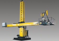 CZ系列焊接操作机 ●焊接机头悬挂于横臂前端,可随横臂上下升降,水平伸缩,随立柱作360°回转。 ●可选配不同类型焊接机头,或悬挂双机头,并与滚轮架、变位机组合使用构成自动焊接中心,尤其适用于制管业、压力容器制造业、金属结构加工业等行业需求。 ●横臂和平车的行走以及立柱电动回转均采用交流变频调速驱动,速度无级可调,数字显示,参数可预置。 ●可选装手动或电动横梁内伸缩臂系统以增加伸缩有效行程 载人型操作机可设载人的操作椅或操作台,随横臂一起移动 ●各型操作机的横梁伸缩、平车行走速度均为0.15-2.5M/MIN,快速空行速度2M/MIN、提升速度0.8M/MIN、电动回转速度0.03-0.75RPM。 ●小型横梁配用超小机头及电视监控系统、焊剂自动送进回收系统,可以实现ф400mm以上内筒体的纵、环缝焊接。 ●电气控制预留接口,可与本公司或国内外其它厂家制造的焊接机、滚轮架、变位机、圆形回转工作台等实现同步联动