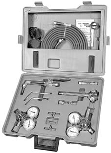 适用于汽车维修、管道修理等轻工、手工行业的气体焊接、切割和加热。 轻巧型组合式焊割炬和轻巧型减压器。 焊接厚度为3.5mm,切割厚度为10mm。 配置大规格焊嘴、割嘴,焊接厚度可达32mm,切割厚度可达76mm。 1110A适用于氧气、乙炔,1110N? 适用于氧气、丙烷或天然气。 外形尺寸:450mm×360mm×100mm 重 量:6kg