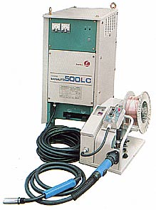 载波技术可控硅控制CO2/MAG半自动焊机(SD-5001CY-LC) 特长: 采用先进的载波控制技术,仅用一条载波信号电缆,就可以在送丝机上调节焊接规范. 送丝机上电缆及气管采用可拆装式设计,大大减轻了远距离作业时搬移送丝机的重量. 具有多种机能和可靠的设计,降低了故障率. 送丝机上装有操作面板和遥控器,在施焊现场即可调节焊接规范. 遥长电缆可加长到50m,更方便远距离作业. 可扩充气刨和手工焊功能(选购). 送丝机上特设数显电流表和电压表,能更精确地调整和监视焊接参数. 具有电流、电压分别调整/简易一元化转换机能,无论初学者与熟练者使用,都能得心应手。 具有收弧简易一元化功能,使用更方便。 规格 型号:SD-5001CY-LC 额定输入电压:AC380V 相数:三相 额定频率:50/60HZ 额定输入容量:30KVA 焊接电流调节范围(直流):60-500A 工作电压调节范围(直流):16-45V 额定负载持续率:60%