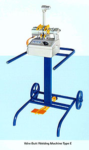 1、 TYPE EA-1型锌丝对焊机: 用于直径1.5至6毫米(截面积1.8至28.3 MM 2)锌丝的电阻对焊。 2、 标准随机附件: A、带V型槽的电极; B、回火电极; C、固定式照明灯; D、带轮托架。 3、 标准随机附件: A、打磨机:用于打磨毛刺,安装在带轮托架上; B、用于直径1至8毫米软金属丝的剪断器; C、用于直径2至6毫米软金属丝的去毛刺钳; D、用于直径4至8毫米软金属丝的去毛刺钳。