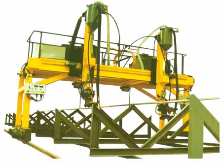 该系列龙门式埋弧焊机主要用于H型钢的自动埋弧焊接,双焊接机头设计,能同时对两件H型钢进行船型位置焊接,本系列产品适应于等截面的H型钢或斜度≤15°、腹板高差≤600mm的变截面梁H型钢。